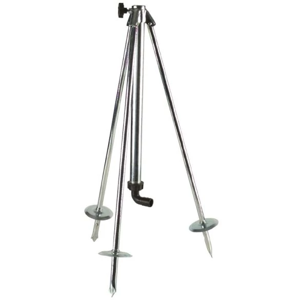 A locsoló állvány egy strapabíró, háromlábú, leszúrható fém állvány, amelyet kifejezetten szektoros, szakaszos működésű vízágyúkhoz terveztek. A dupla fúvókás kialakítás lehetővé teszi a víz egyenletes és mélyre ható elosztását, így különösen alkalmas mezőgazdasági parcellák, parkok, gyümölcsösök vagy nagyobb kertek öntözésére.
