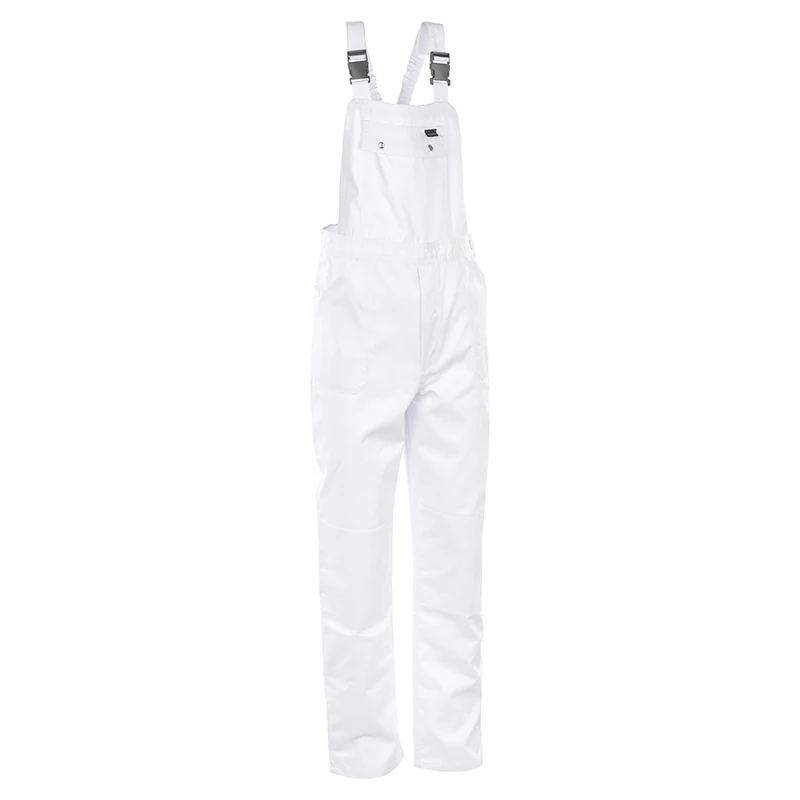 • Anyag: 65% PES, 35% pamut, 240 g/m2 • 2 rátétes zseb, 1 szitázható mellzseb, 1 farzseb, 1 szerszámtartó zseb • Állítható hosszúságú, gumírozott vállpánt • Állítható, gumírozott derékbőség • Dupla térdfolt a jobb kopásállóságért • 60 °C-on mosható • Szín: fehér