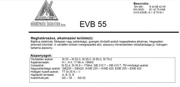 Elektróda bázikus EVB 55 2.5 mm 4,4kg/csomag.