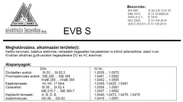 Elektróda bázikus EVB S 4.00 mm 5kg/csomag.