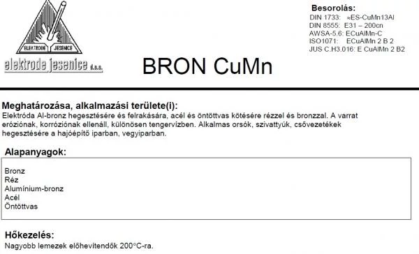 Elektróda BRON CU MN 2.50 mm 4.5kg/csomag.