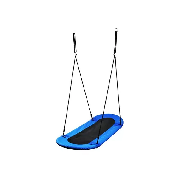 Ezen az ovális alakú fészekhintán egyszerre 3 gyermek is élvezheti a hintázás örömét. Erős szövetből, strapabíró acélcsőből álló szerkezet. Négy ponton rögzített. Magánkerti használatra ajánljuk. A hinta felszereléséhez ajánljuk, hogy vásároljon csúszócsapágyas hintacsuklót, melyhez könnyedén csatlakoztatható a hintakarika, így teljes biztonságban tudhatja hintázó gyermekét.