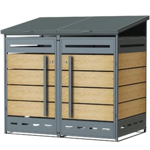 A GB-2 zárható acél kukatároló ideális választás azok számára, akik a háztartási hulladéktárolást esztétikusan, biztonságosan és funkcionálisan szeretnék megoldani. A dupla kialakítás lehetővé teszi két szabványos kuka tárolását, legyen az 80, 120 vagy akár 240 literes.