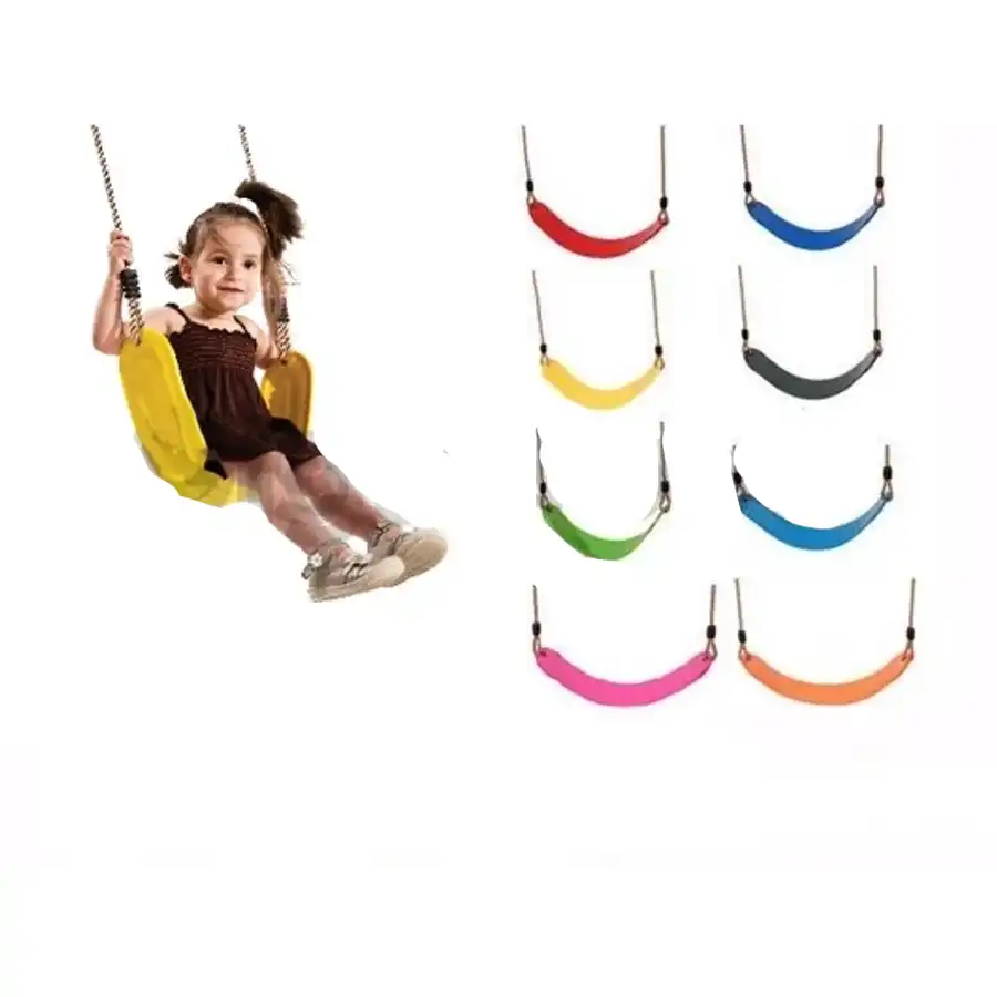 A hinta ülőkerésze színes UV stabil műanyagból készül, mely a gyerek feneke köré simulva kényelmes hintázást biztosít, ugyanakkor kis súlyából és rugalmasságából adódóan nem üti meg a másik gyermeket.