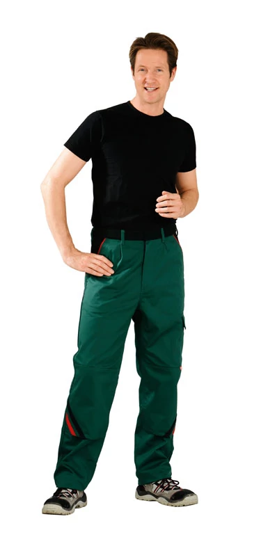 • KÉSZLETTŐL FÜGGETLENÜL RENDELHETŐ - ÉRDEKLŐDJÖN KOLLÉGÁINKNÁL • Alapanyag: 65% poliészter, 35% pamut, 285 g/m2 Twill • 2 oldalzseb • 2 térdzseb színes rátétekkel • Telefontartó zseb • 2 zsebfedős farzseb • Rugalmas derékszegély • Fényvisszaverő szegély csíkok a zsebeken és a zsebfedőkön • Dupla vonalzózseb • Cipzáras slicc • Kalapácstartó • Szín: zöld/fekete/piros