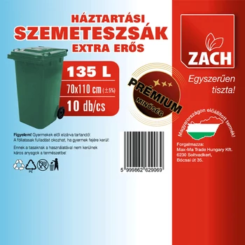 Extra erős, 135 literes szemeteszsák, amely tökéletes választás nagy mennyiségű hulladék tárolására. A 30 mikron vastagságú anyag és az erős hegesztés garantálja a tartósságot, míg a praktikus perforáció megkönnyíti a használatot. 10 db/csomag kiszerelésben kapható. |