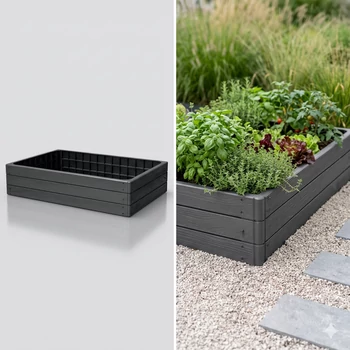 A Base Woody 238 literes magaságyás a modern kertészkedés alapdarabja, amely ötvözi a fa természetes hatását a műanyag tartósságával. Az elegáns antracit szürke kivitelű ágyás ideális választás zöldségek, fűszernövények vagy dísznövények termesztéséhez, legyen szó kertről, teraszról vagy erkélyről. Ergonomikus kialakítása megkíméli a derekat, miközben időjárásálló anyaga garantálja a hosszú élettartamot és a minimális karbantartási igényt. 1492x756x250 mm |