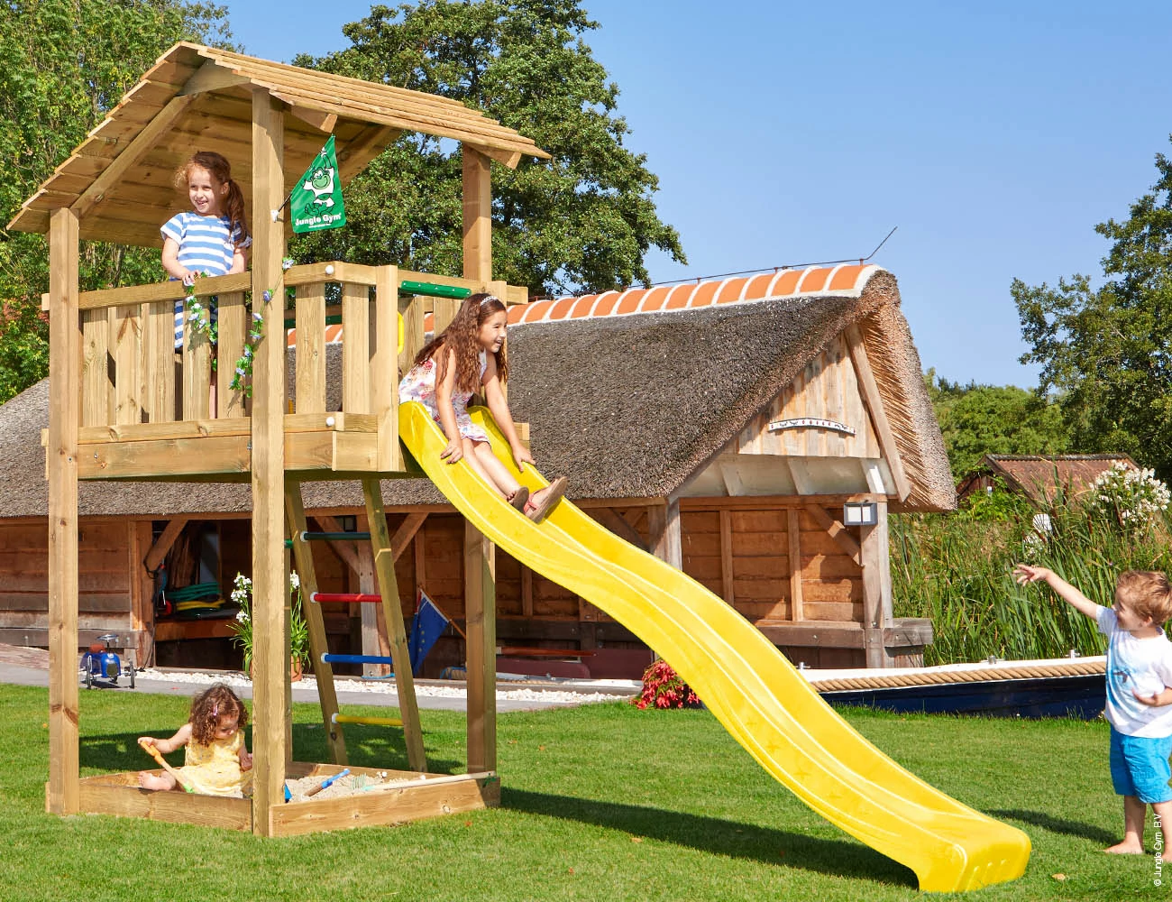 Klasszikus mászótorony. Egyszerűsége és méretei bármilyen kertbe ideálissá teszik. A fatetőt egy új, bújtatott szerkezet tartja. A torony alatti homokozó még több mókát ígér. A Shelter számos biztonsági felszerelést tartalmaz és a Jungle Gym modulokkal és kiegészítőkkel a végtelenségig bővíthető.