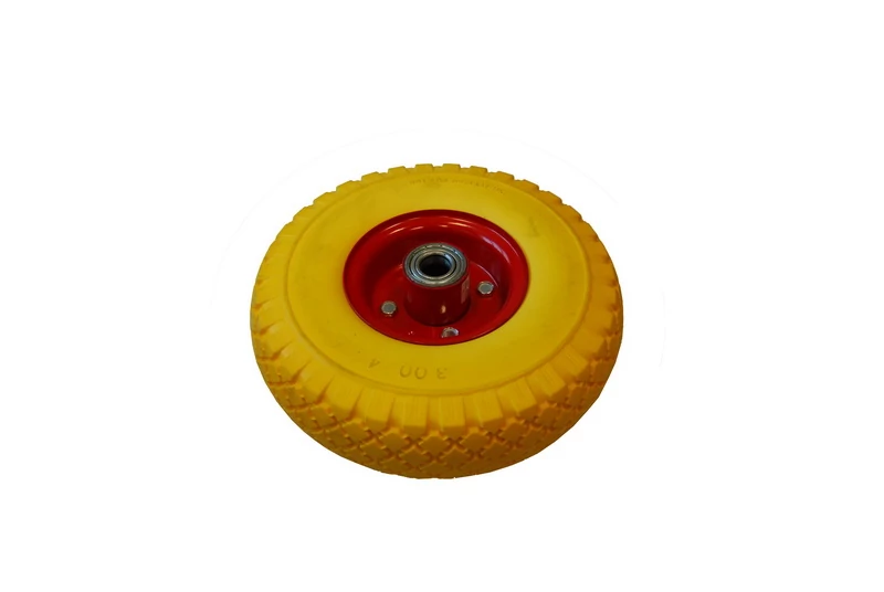Kerék PU Tömör 3.00-4 fémfelni + golyós csapágy Sárga