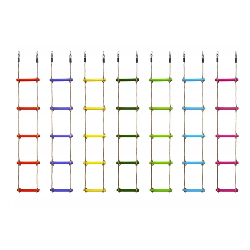 Kötéllétra 5 db 3x30 cm-es színes, műanyag létrafokkal. Hossza 180 cm.