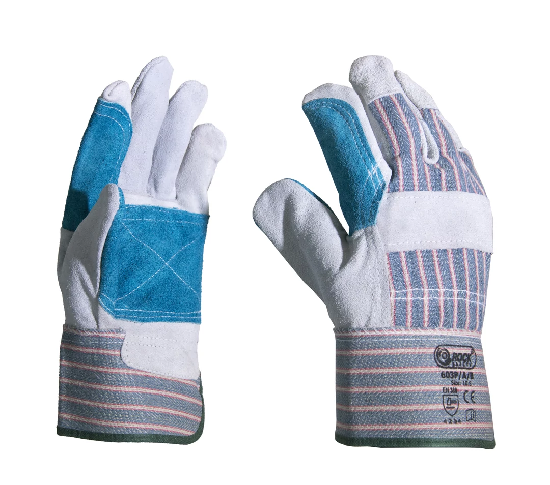 • Marha hasítékbőr tenyér-, ökölcsont-, köröm- és érvédő • Türkiz tenyérfolt a mutató- és hüvelykujjon is • Vászon kézhát, kasírozott mandzsetta • Pamut tenyérbélés • Extra erős • „B” vastagság • Bőrszín: szürke • Kézhát: csíkos