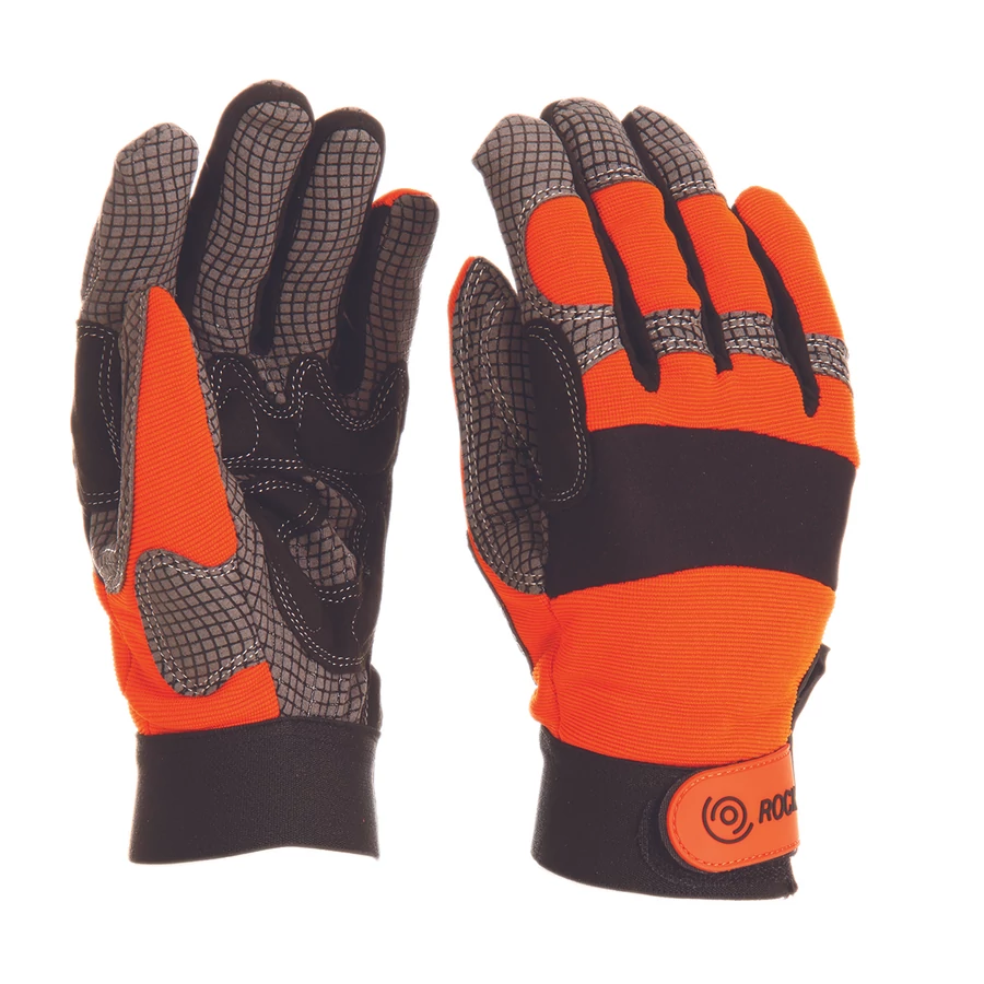 • Szintetikus bőr tenyér • Körömvédő • Rugalmas kézhát • Tépőzáras mandzsetta • Csúszásmentes, párnázott tenyér • Bőrszín: szürke • Kézhátszín: narancs