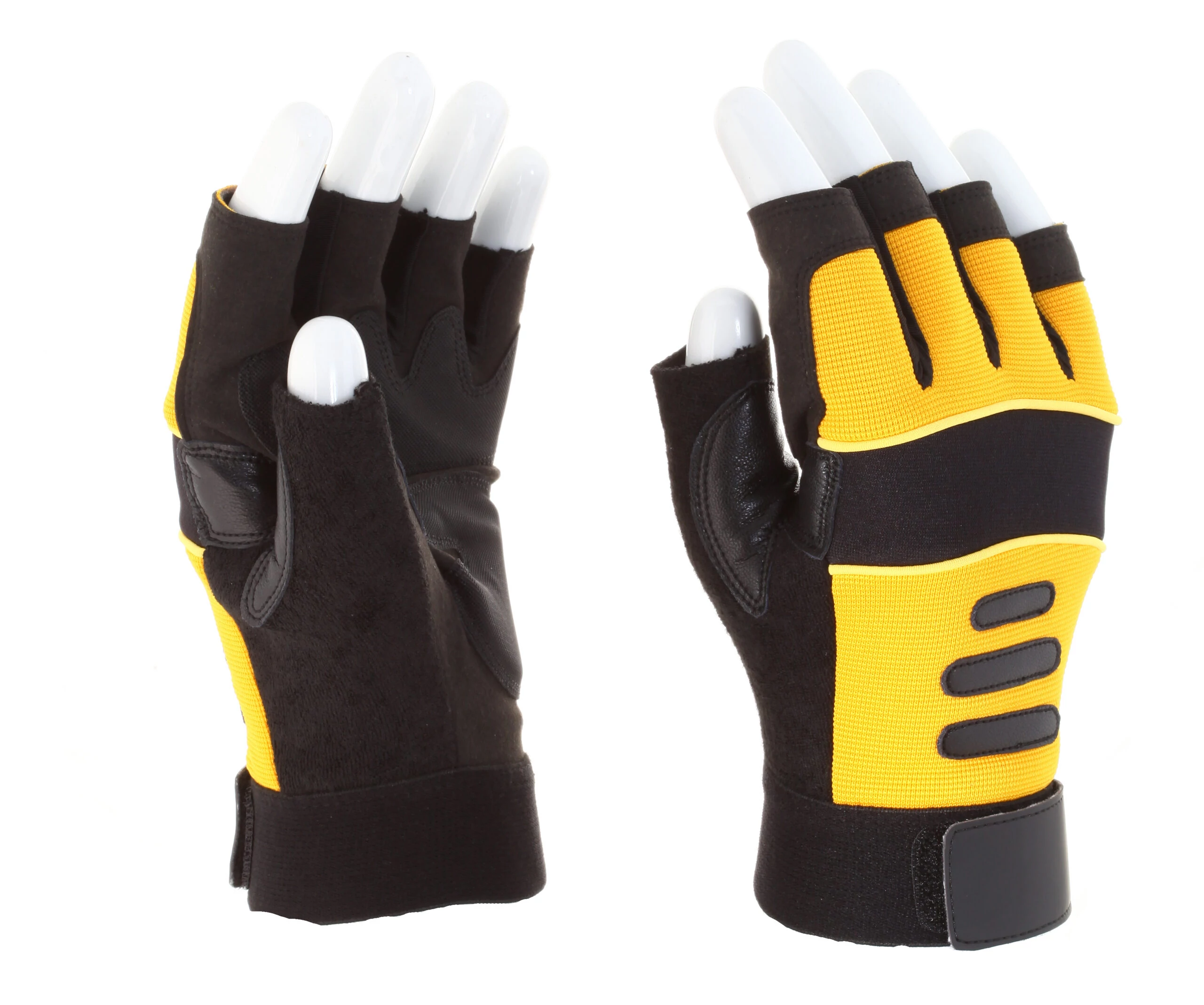 Mechanikai kesztyű, ujjvég nélküli, sárga, tenyérfolttal