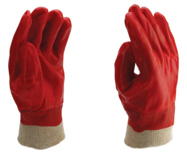 • Alapanyag: 100% pamut • Vegyszerálló: „B Típus” (AKL) • III. kategória • Piros PVC mártott tenyér és végig mártott kézhát • Kötött mandzsetta • Szín: törtfehér