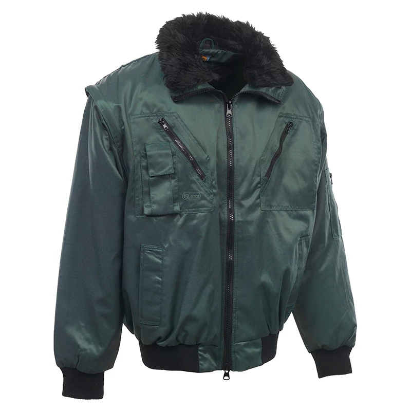 • Alapanyag: 55% pamut, 45% poliészter (vízlepergető) • Bélés: műszőrme • Zsebek: 2 oldalsó, 2 cipzáras mellzseb, 1 belső zseb • Kivehető bélés • Levehető karok • Gumírozott derékrész és mandzsetta • Feliratozható hát- és mellrész • Szín: zöld