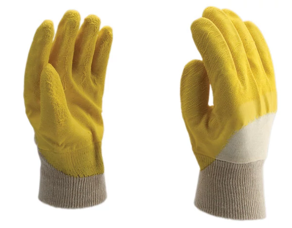 • Alapanyag: 100% pamut • Sárga latex tenyér- és kézhátmártással • Kötött mandzsetta • Érdesített mártás • Szín: törtfehér