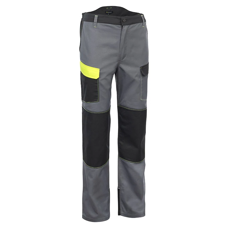 • Anyagösszetétel: 65% poliészter, 35% pamut – 250g/m2 twill • Megerősített varrás – 2x-3x erősebb • Fényvisszaverő és fluoreszcens elemek • Kényelmes, gumis, magasított derékrész a hátközépen • Megerősített térdfolt • Tépőzáras oldalzsebek • 60°C-on mosható, max. 110 °C-on vasalható • Szín: fekete-szürke-sárga