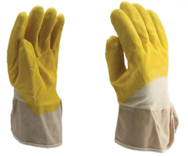 • Alapanyag: 100% pamut • Sárga latex tenyér- és kézhátmártással • Vitorlavászon mandzsetta • Érdesített mártás • Szín: törtfehér