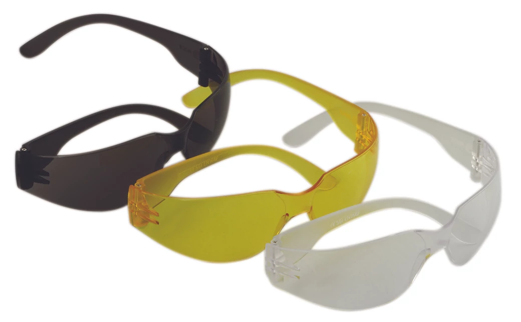 Sárga polikarbonát lencse: Fokozza a kontrasztot, javítja a látásélességet gyenge fényviszonyok között, például műhelyekben vagy raktárakban.