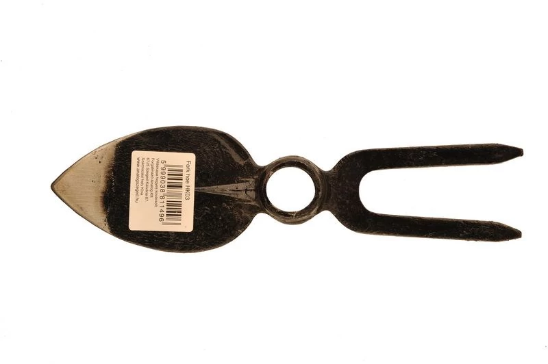 Kovácsolt hegyes villáskapa, amely hasznos a kerti munkák során.